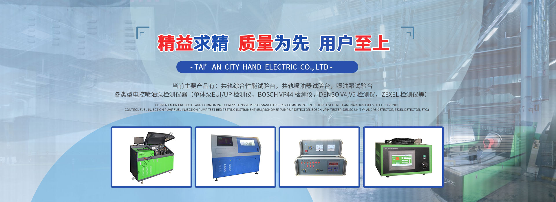 是設(shè)計、制造和生產(chǎn)內(nèi)燃機(jī)檢測試驗(yàn)設(shè)備的企業(yè),集生產(chǎn)制造、配件銷售為一體